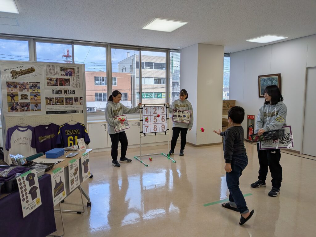 選手たちとのストラックアウト体験・活動報告パネル展示・グッズ販売