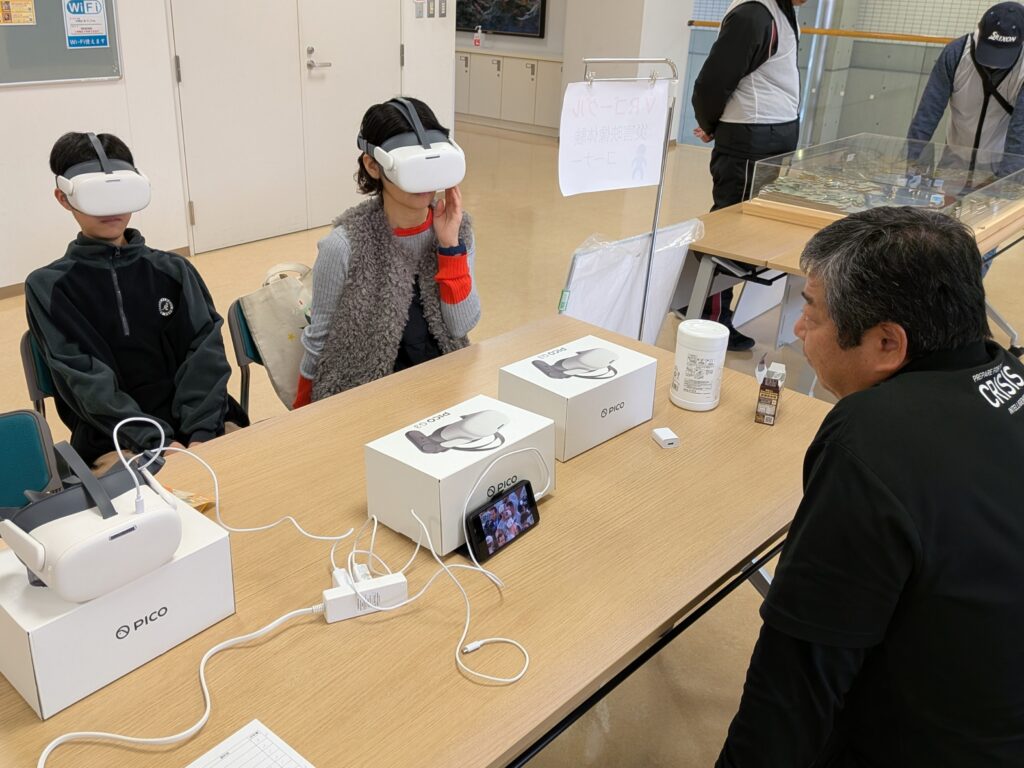 防災クイズコーナーやVRゴーグルを用いた災害映像体験,防災グッズやジオラマ展示