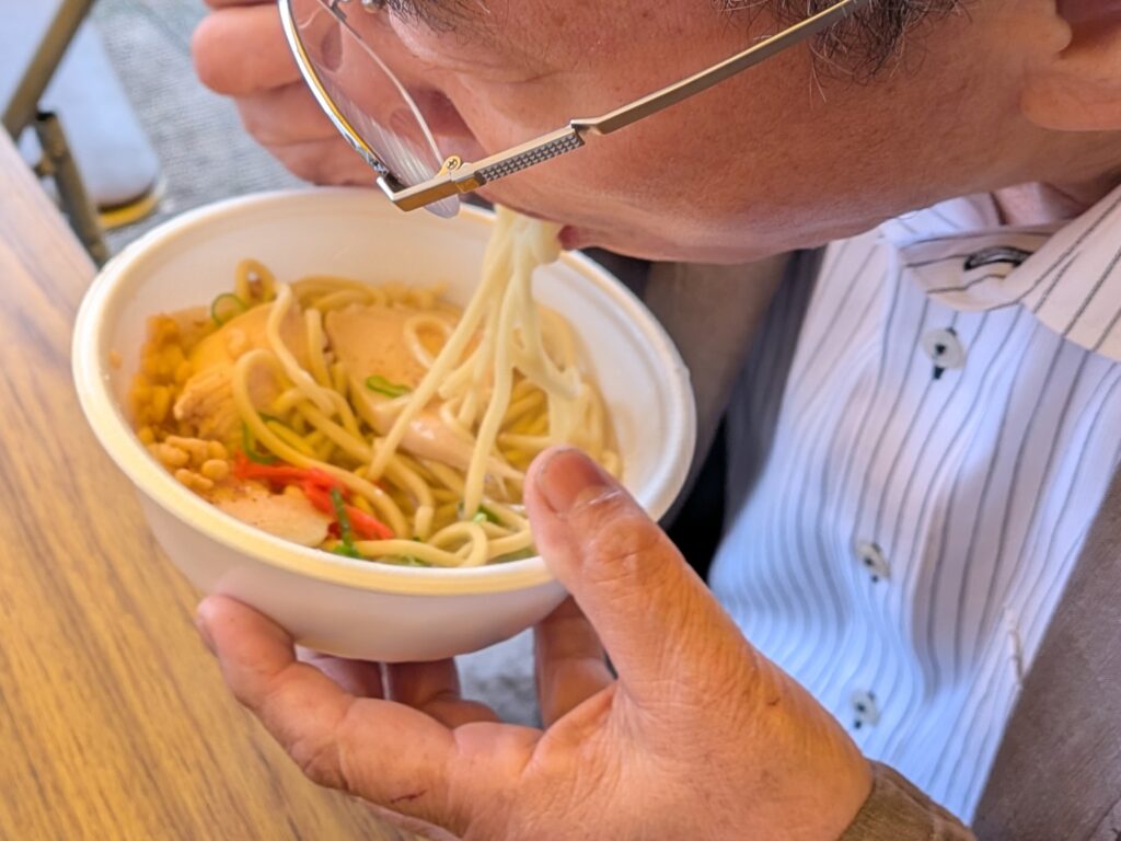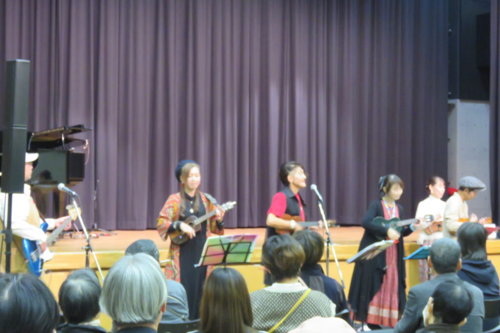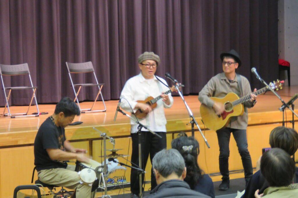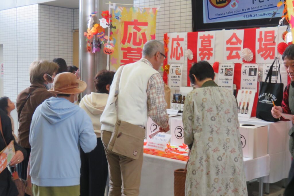 ホールでは、アマチュアバンド8団体による洋楽、フォークソングなどで会場内は盛り上がりました。また、ホール内のフリーマーケットでは、小物・雑貨・こども服などを買い求める人で賑わいしました。普段できないウクレレやボイストレーニング、ピラティストレーニングの体験も興味ある人が参加し楽しんでいましたし、手のひらで野菜摂取量が分かるベジチェックは多くの関心を集めていました。2階では、子どもがブラックパールズのストラックアウトに熱中し、三次防災の防災用品の展示、三次消防署のAED体験やバネル展示・防火映像や十日市自主防災連合会によるVR体験や、防災クイズに取り組む家族がありました。外では、キッチンカーや飲食ブースで食事を楽しんでいました。ロビーでは、特産品が当たる抽選会に多くのが投票していました。
