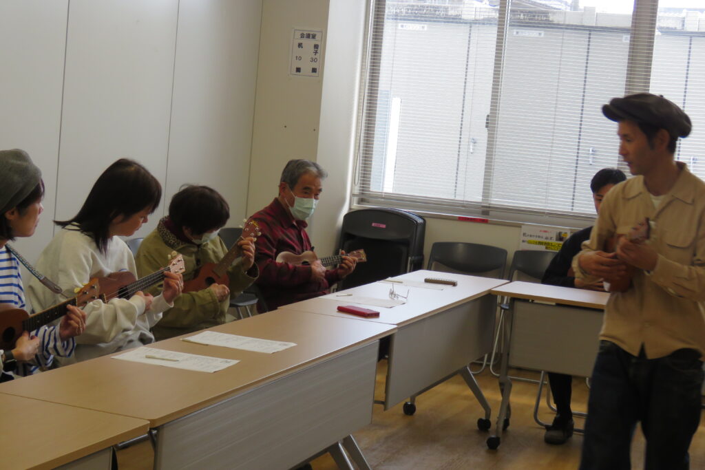 各会場で開催されたピラティスとトレーニング体験・ウクレレ体験講座・美と健康のボイストレーニング