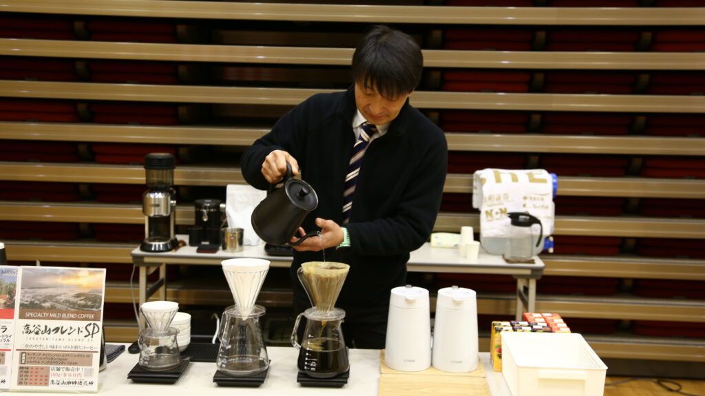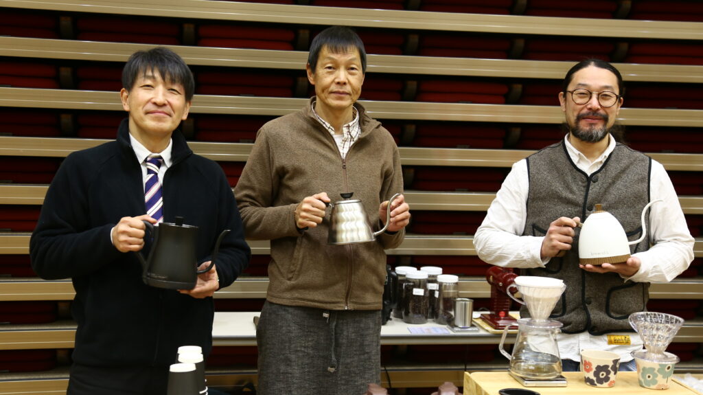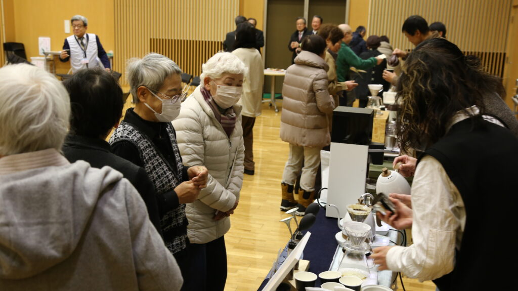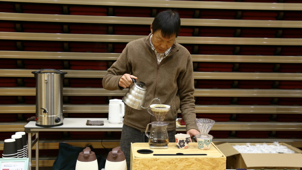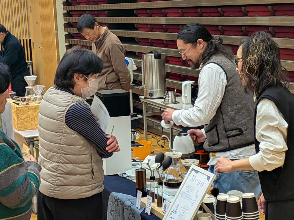 今年は会場で終始 身体も心も温まっていただけるよう,自家焙煎に励む「三次コーヒーの会」より3店舗にお越しいただき,名付けて『十日市コーヒーフェス』として各店主,こだわりの逸品を開場から閉会後まで参加者に提供いただきました。